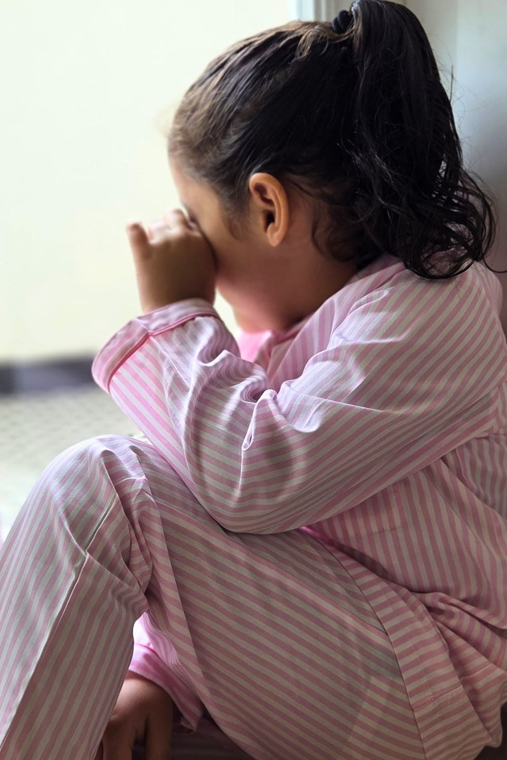 Our Classic Blush Pyjama Set, crafted in 100% breathable cotton, this pink striped pyjama set features a classic collared shirt with a piping along the sleeves, shirt, and pyjamas.