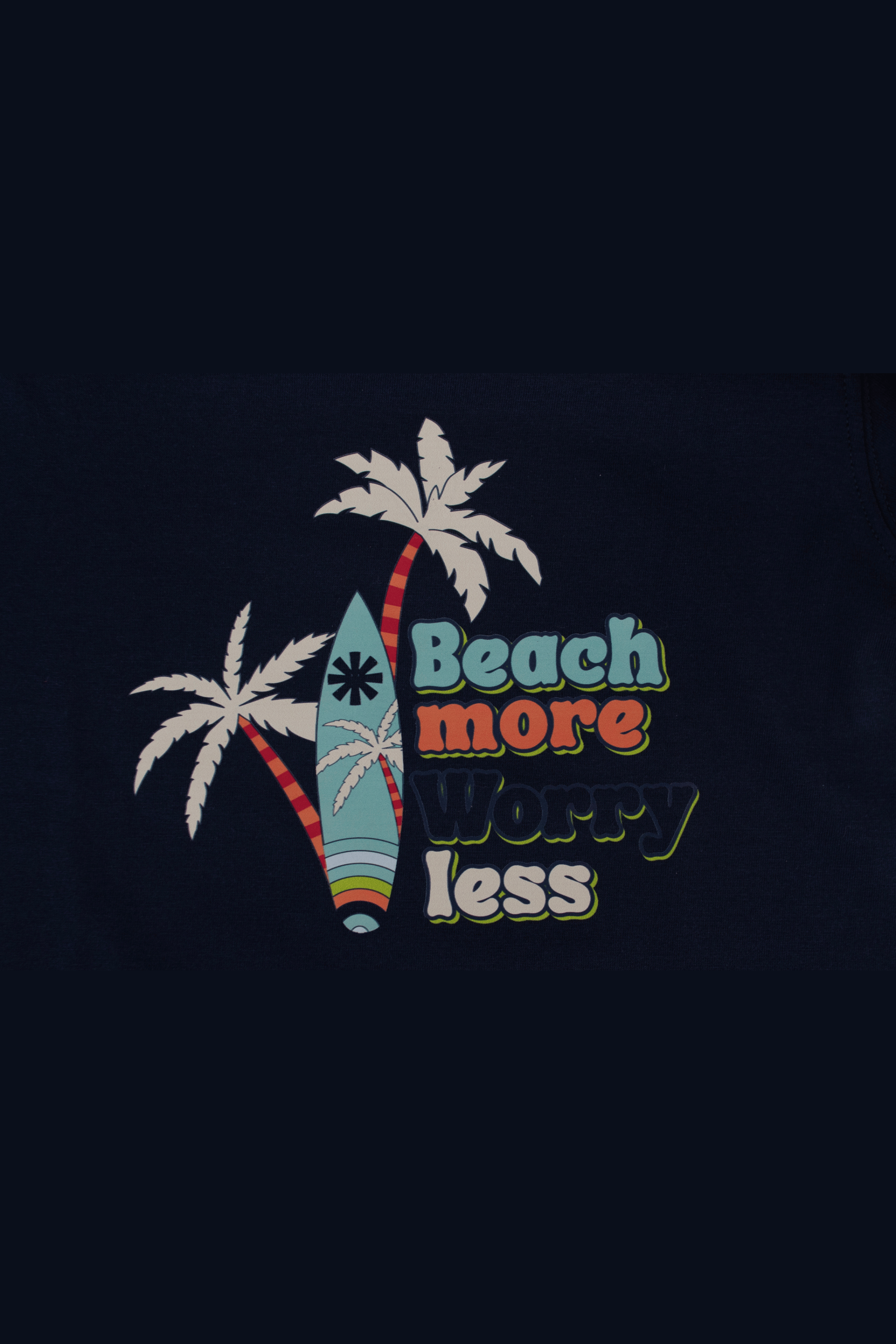 Say goodbye to sleepless nights with our cozy Navy Beach More Worry Less Full Sleeves Pyjama Set! Soft, breathable, and perfect for a peaceful slumber, these pyjamas feature a comfortable full sleeve design and a relaxed fit. The navy blue hue is both timeless and versatile, ensuring your little boy looks and feels his best. Get ready for sweet dreams and a restful night's sleep with this adorable set!