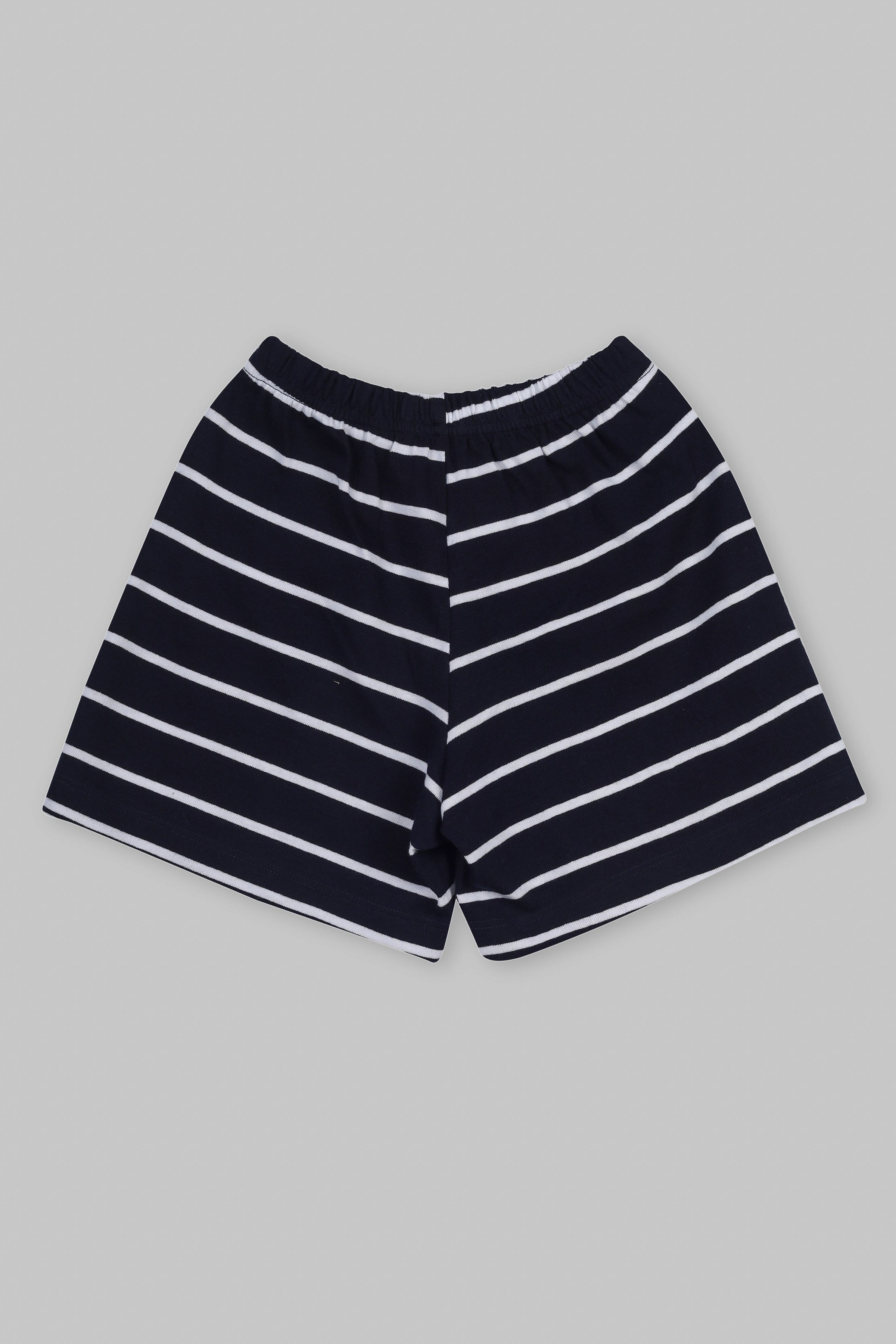 All time favourite, White is our stars colour All colours stand best on this background. Matched with stripes in navy shorts. Made of 100% cotton finish fabric.