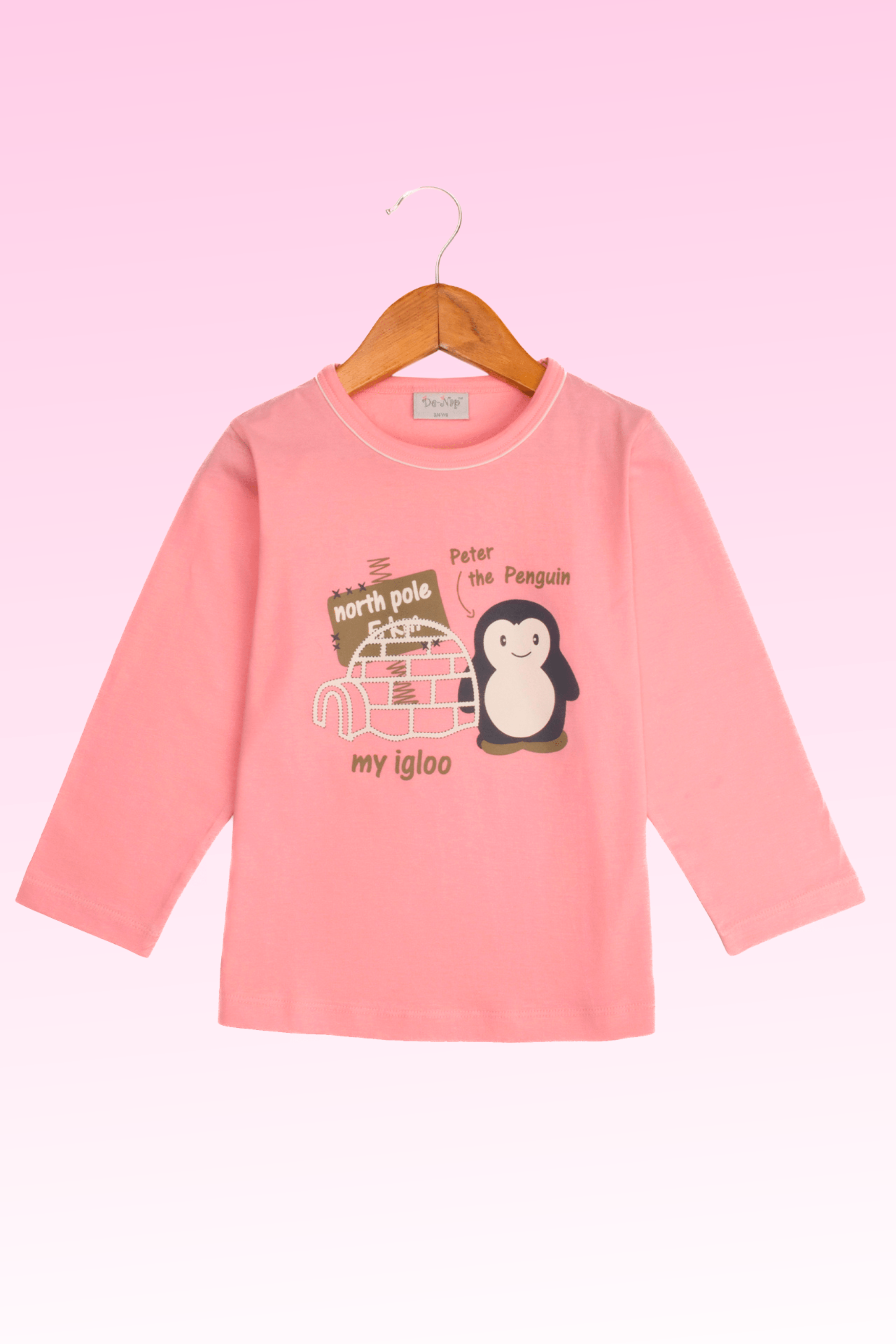 Unleash bedtime adventures with our Peach Peter Penguin Full Sleeves Pyjama Set for girls. This delightful set features a cute chest print of Peter Penguin and Igloo, adding a touch of whimsy. The peach top complements the cream all-over print of Peter Penguin on the bottom, creating a charming ensemble. Elevate bedtime with this perfect blend of comfort and playful design. Let the dreams begin!