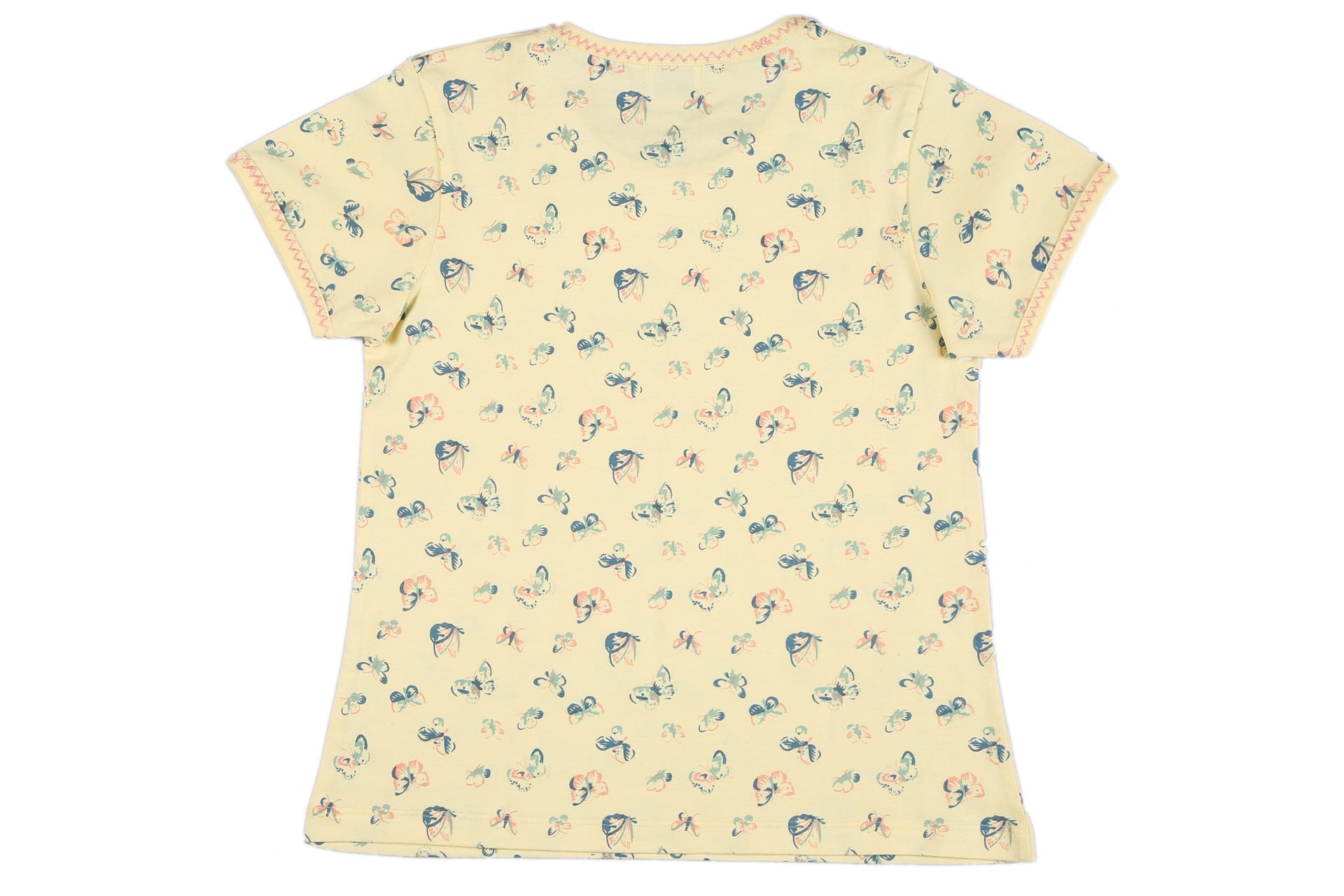 Our lemon butterfly-print short set is sure to brighten your little girl's day. This half sleeves round neck top is completed by matching butterfly shorts.