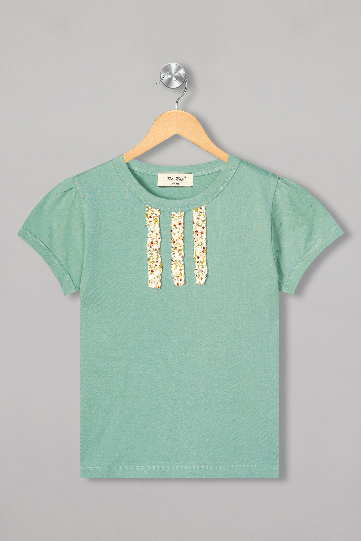 Bring a touch of whimsy to bedtime with the Green Dreamsicle Blooms Legging Set for girls! This delightful PJ set features a fresh green top with short sleeves and a playful round neckline, adorned with charming ruffle details at the bottom that add a fun twist. The tiny floral printed leggings complete the look, bringing vibrant colors and comfort to her nighttime routine. Perfect for sleepovers or cozy nights in, this legging set is designed for easy movement, ensuring she can play and dream in style. Made with soft, breathable fabric, the Green Dreamsicle Blooms Legging Set will keep her comfy and cute all night long. Let her imagination blossom with this enchanting pajama set!