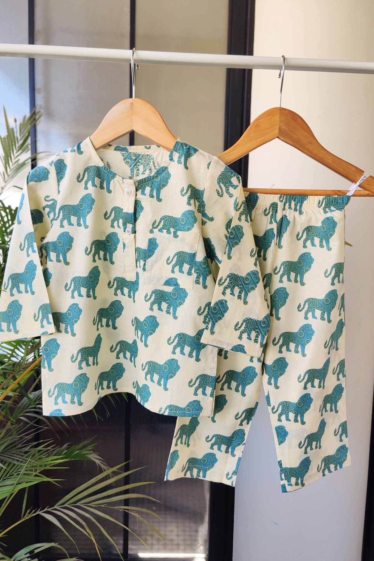 This set features a stunning hand-block printed lion motif, symbolizing strength and royalty. Every print is carefully handcrafted by skilled Indian artisans using traditional techniques, making each piece a tribute to India’s rich heritage of block printing. The beautiful earthy tones and intricate detailing make this set a timeless and elegant choice for bedtime.