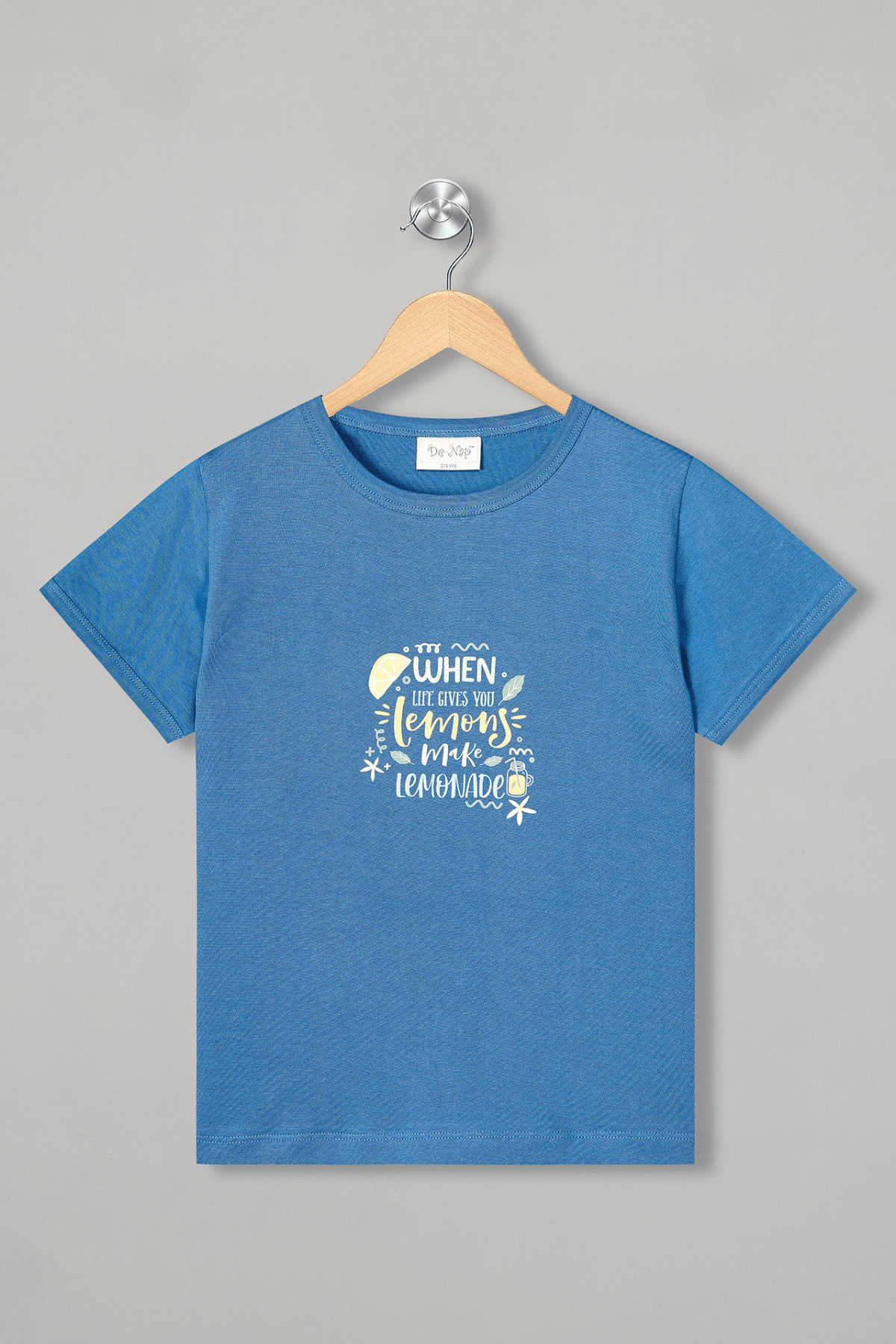 Get ready for a fun girl's night in with our When Life Gives You Lemon Pyjama Set! Featuring a cute chest print and a playful geometric bottom, this blue sleepwear set is perfect for lounging and sleepovers. Forget life's lemons and make lemonade in style with this adorable girl's nightwear.