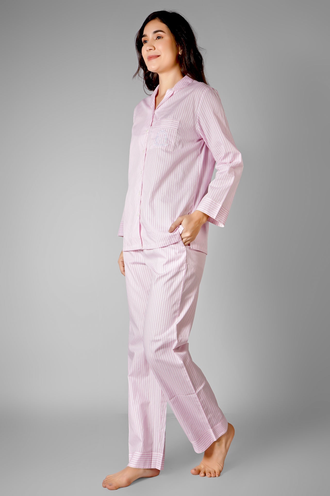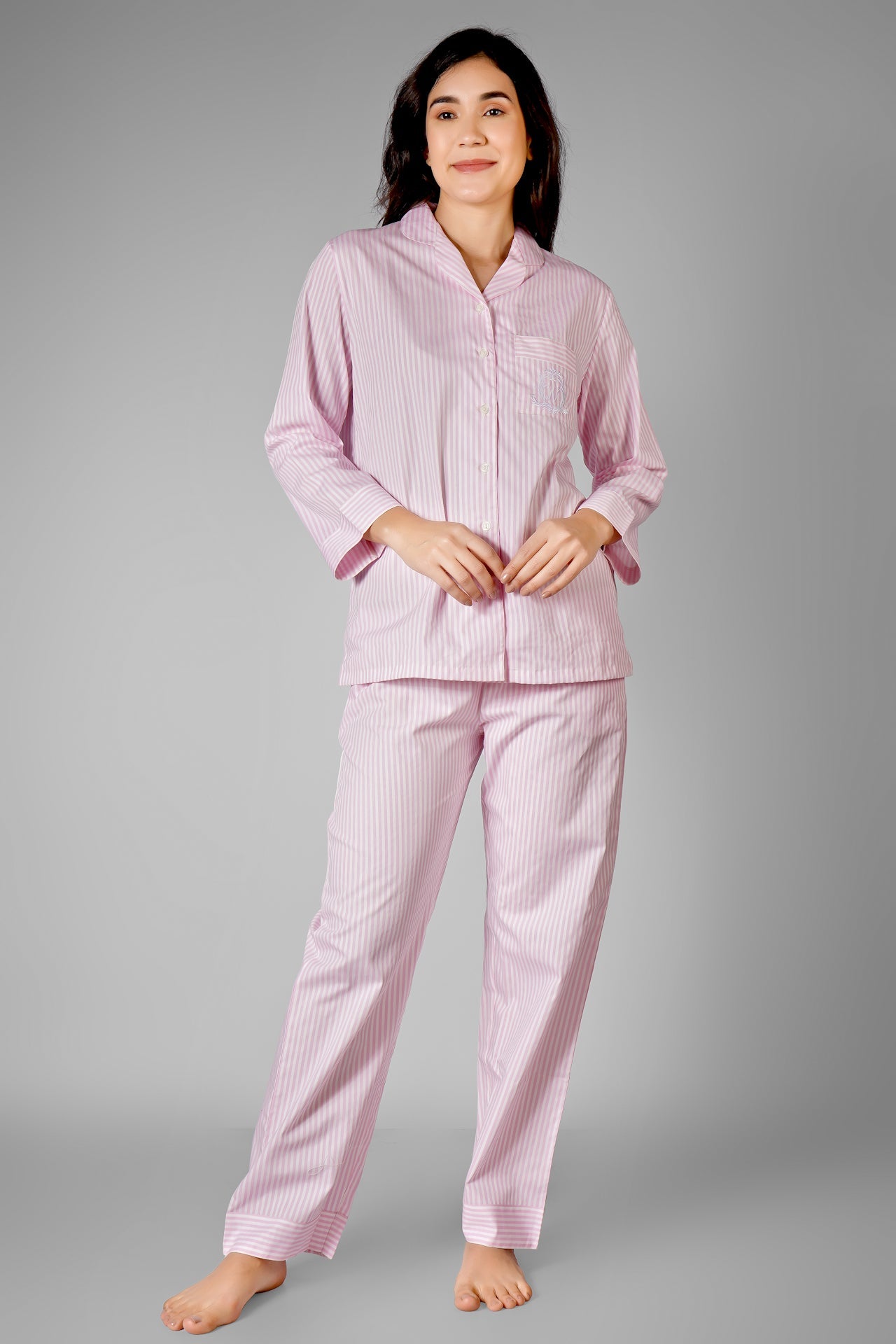 Wrap yourself in the allure of the night with our Candy Pink Pyjama Set for women. Dive into dreamland in style with pink and white stripes that exude charm. Crafted in breathable cotton, this set boasts a revere collar for a touch of elegance and an elasticated waist bottom for the perfect fit. Embrace the cozy chic of the night – where comfort meets sophistication. Drift away in dreams as vibrant as the hues that adorn this enchanting ensemble. Sleepwear that's as bold and beautiful as your dreams.