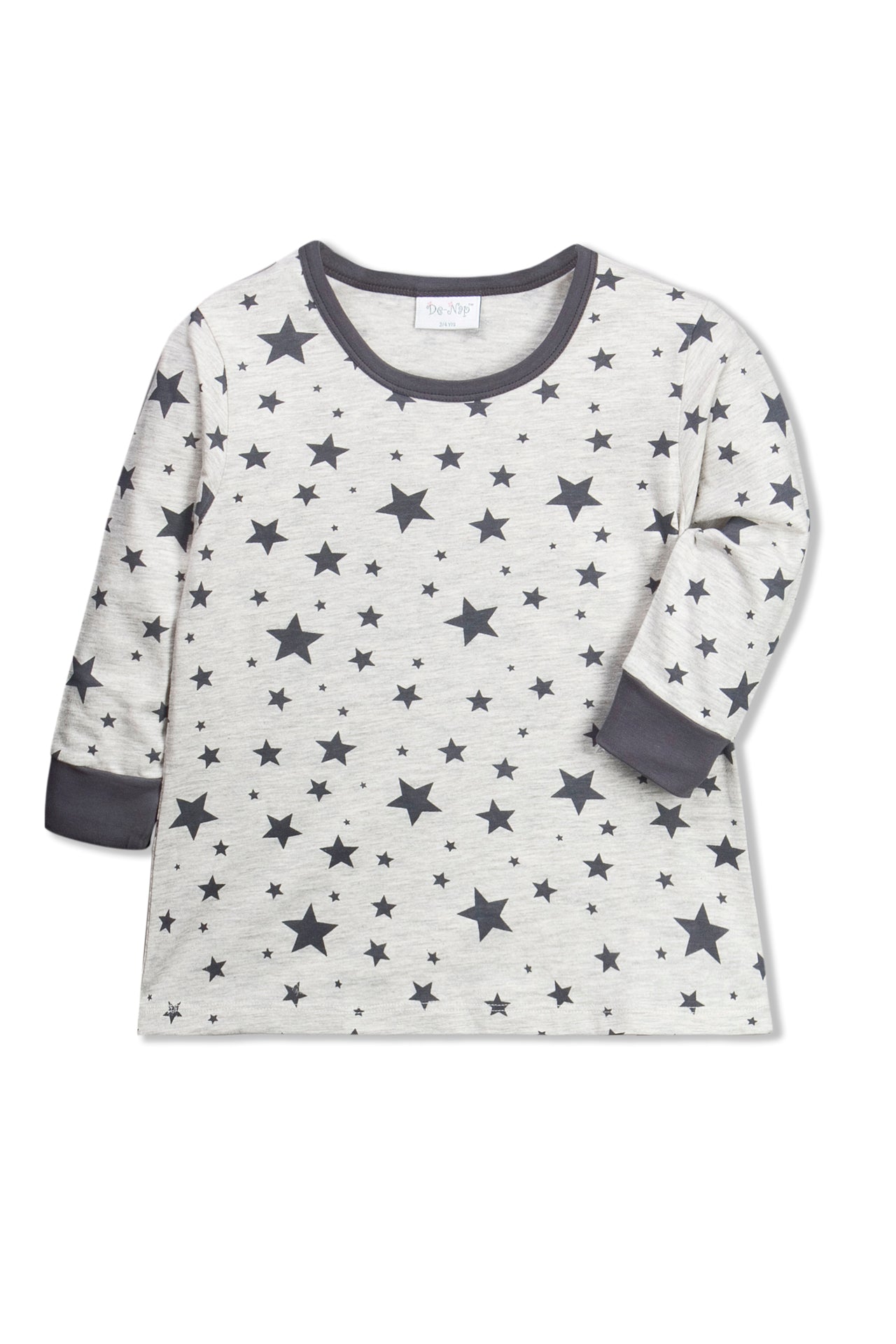 This fine piece of oatmeal pyjama set with stars print will make all kids star of the night , made of 100% cotton knits fabric , styled with cuffs on the sleeves and bottom .