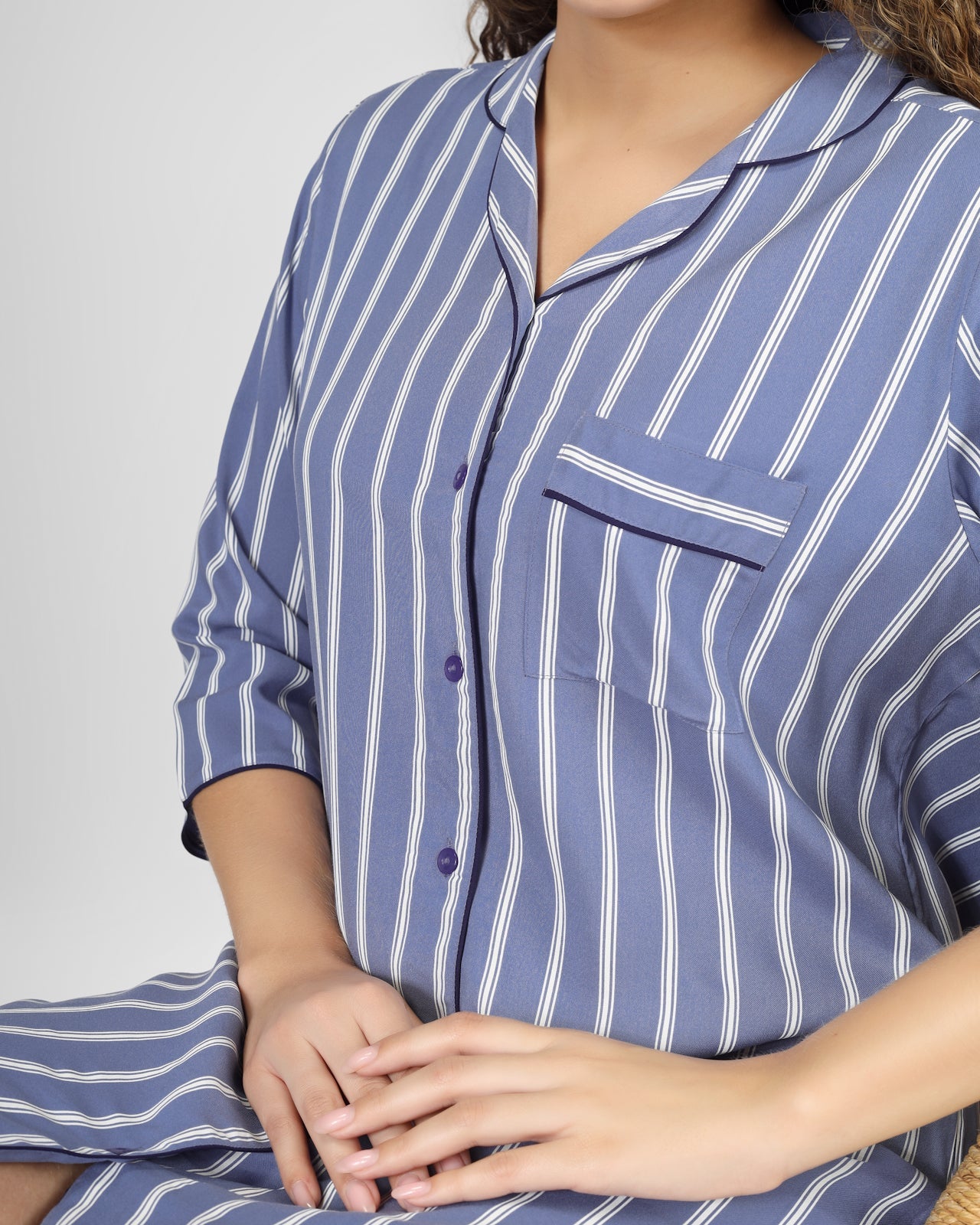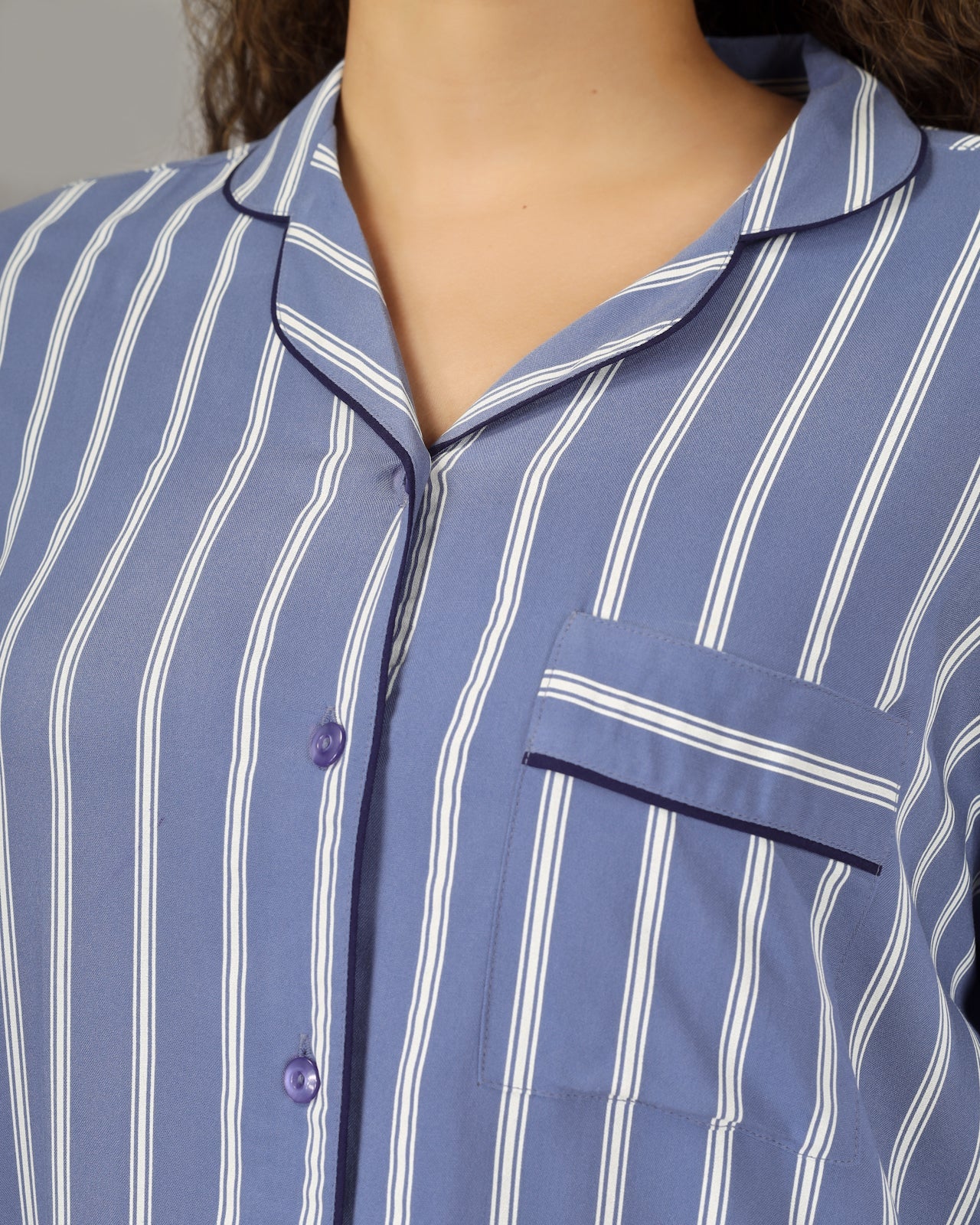 Slip into effortless comfort with our Midnight Mist Nightdress, crafted in breathable ,buttery soft fabric, The deep blue adds a touch of elegance ,making it perfect for relaxed evenings and cozy morning.