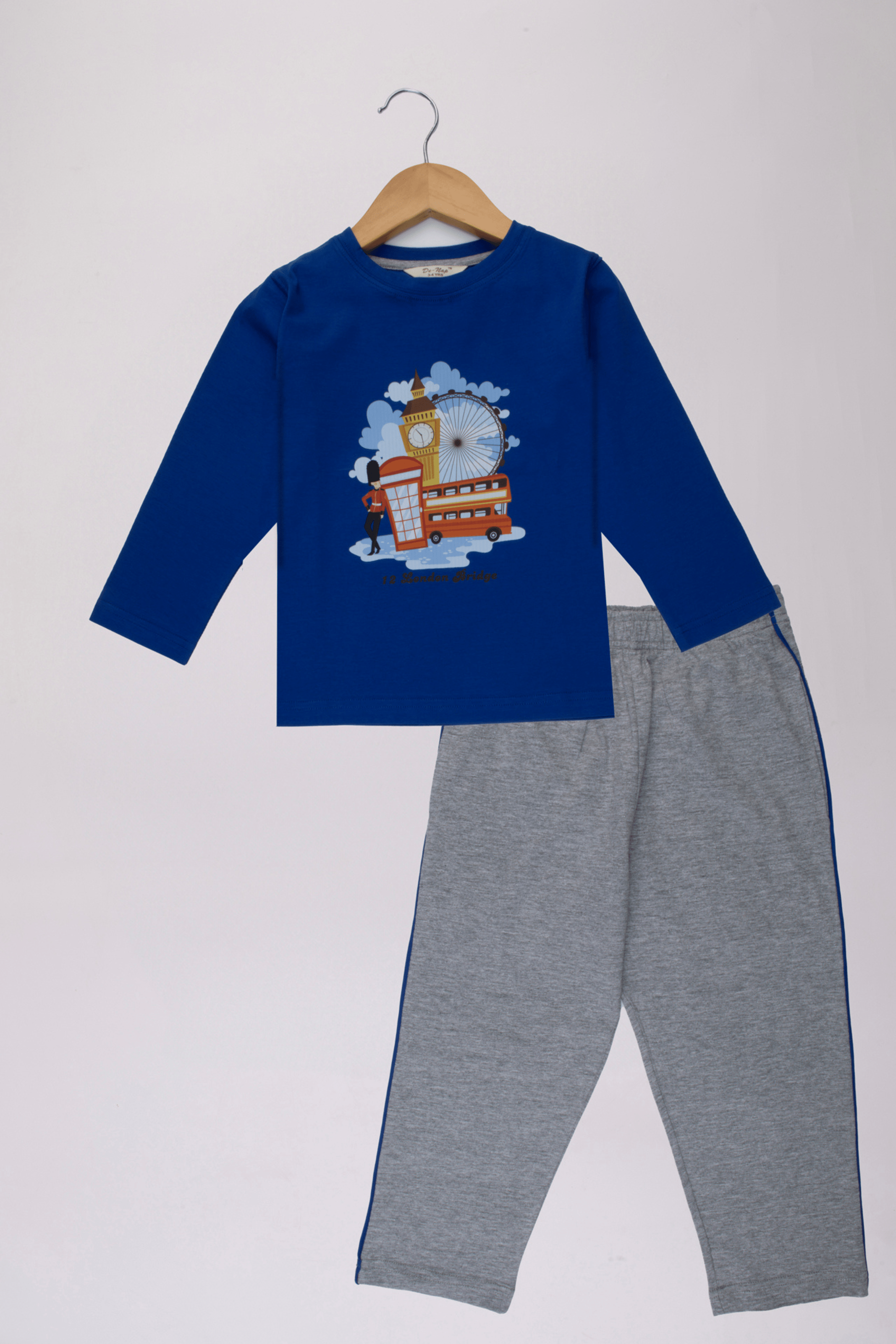 Embark on dream-filled nights with our Blue London Bus Pyjama Set for boys. Adorned with an iconic London bus design in charming blue hues, these PJs turn bedtime into an adventure. The full sleeves provide warmth, while the soft, breathable fabric ensures a cozy night's sleep. Elevate bedtime with this delightful set that seamlessly blends comfort and imagination. Make every night a new adventure with our Blue London Bus Pyjama Set – where dreams take center stage.