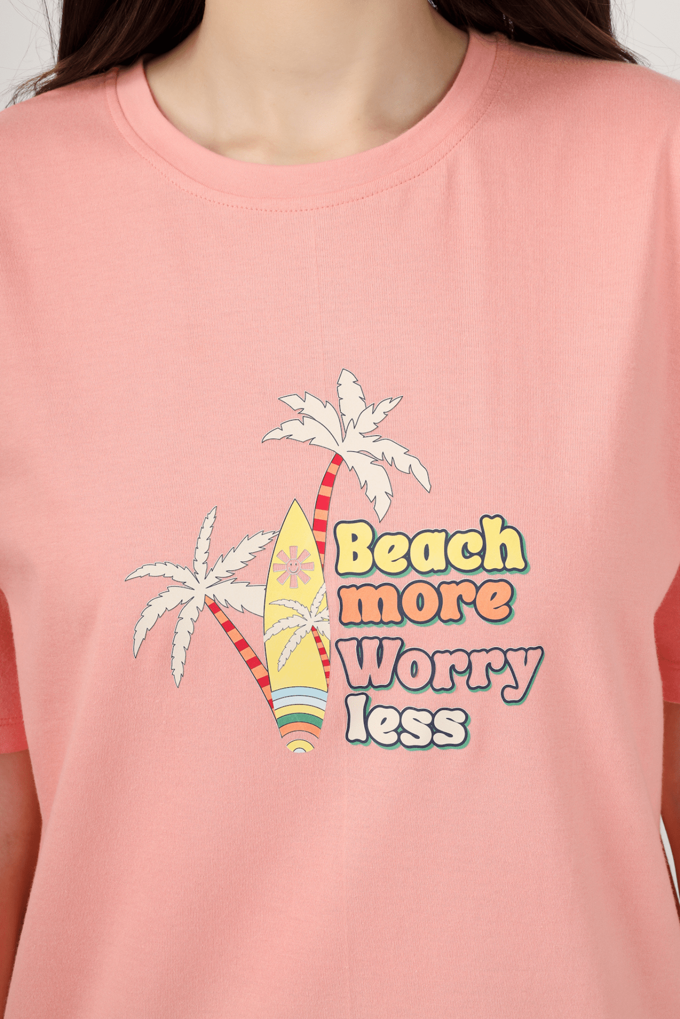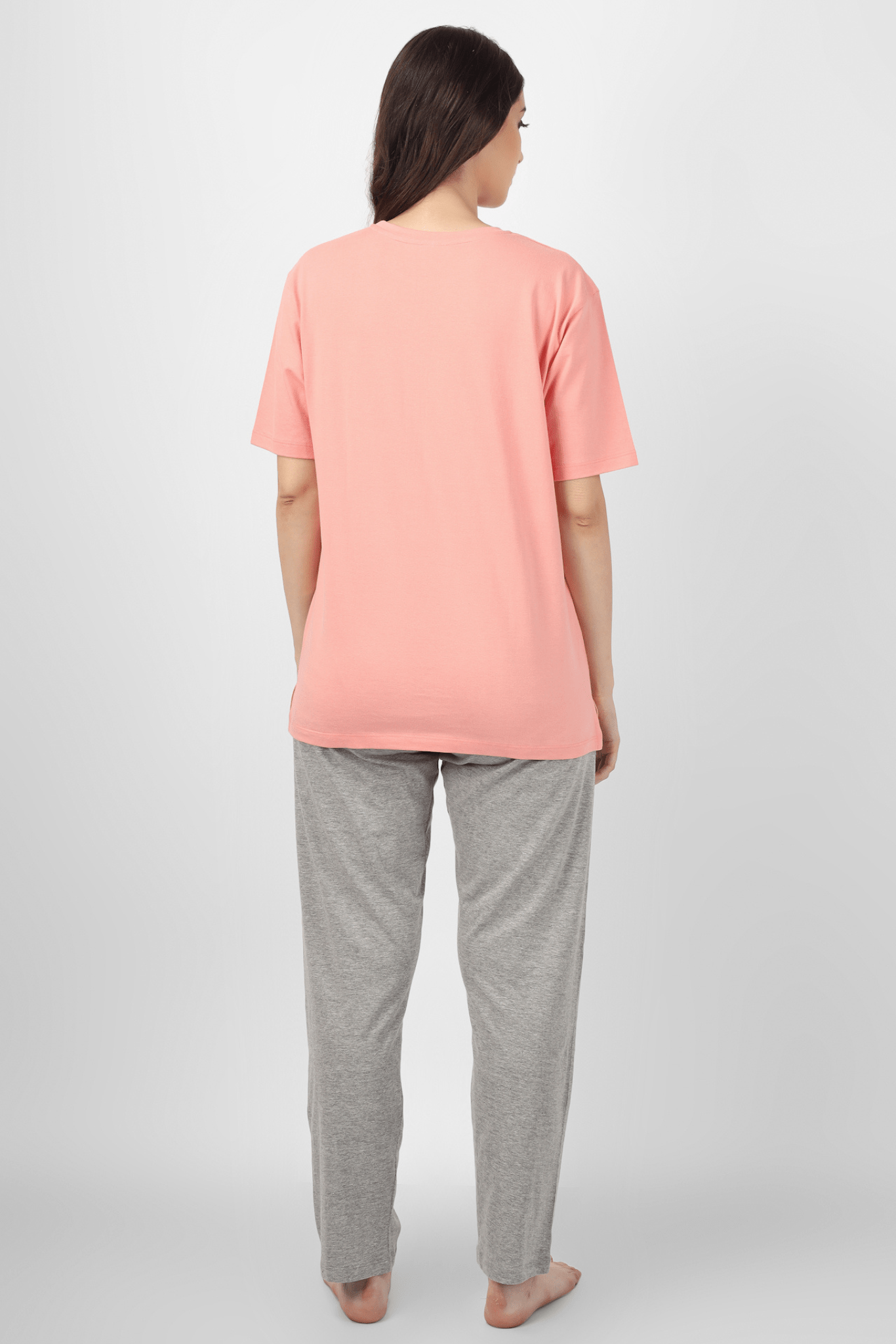 Experience blissful nights with our Peach/Grey Sun-Kissed Dreams Pyjama Set, a charming addition to women's nightwear. The peach top, adorned with a heartwarming "Beach More Worry Less" print, evokes feelings of relaxation and serenity. Crafted from 100% cotton knits, this set offers a gentle embrace, while the cozy grey pyjamas complete the ensemble for a restful slumber.