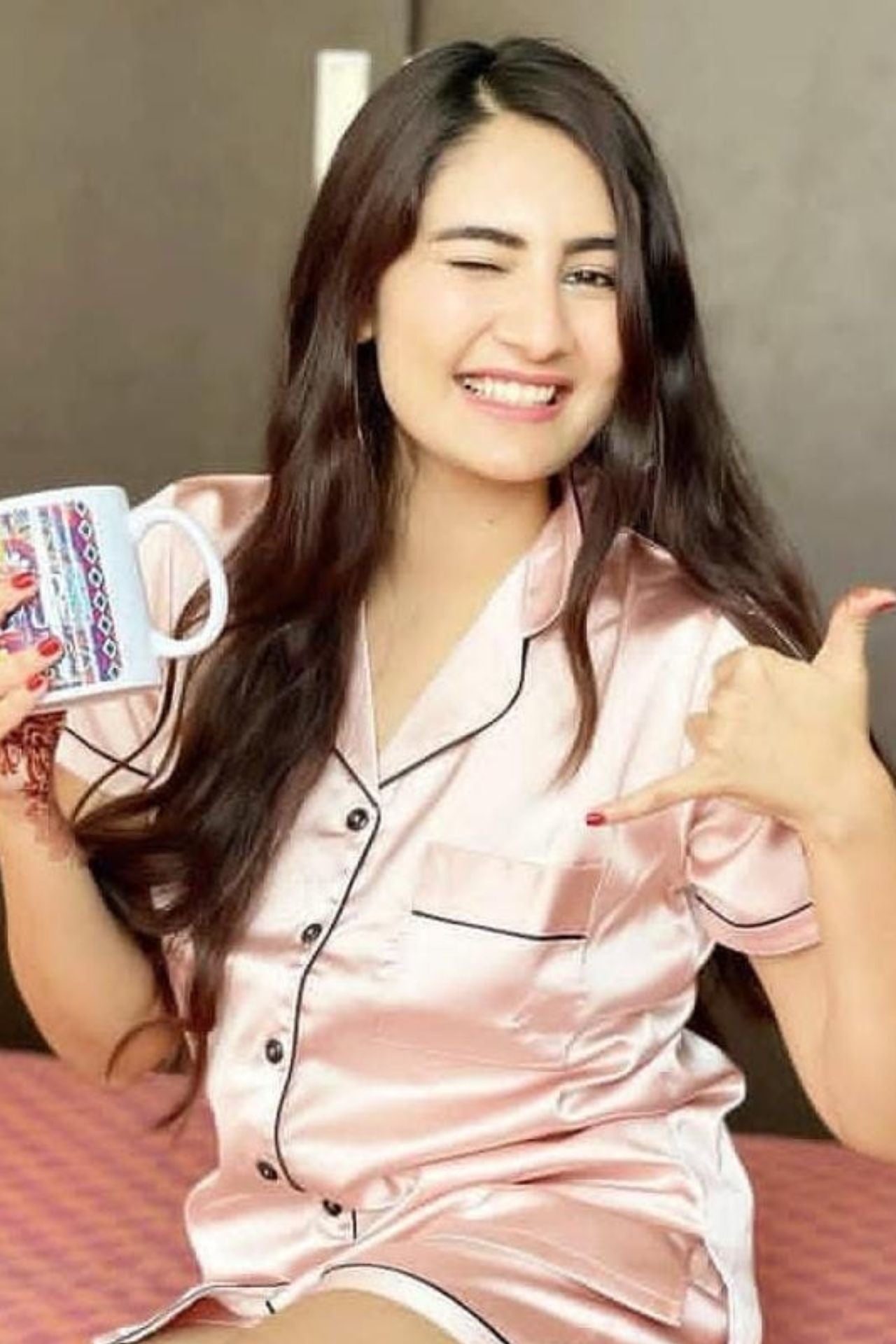 Rose Pink satin nightwear with elegant contrast piping (photo-ready!)