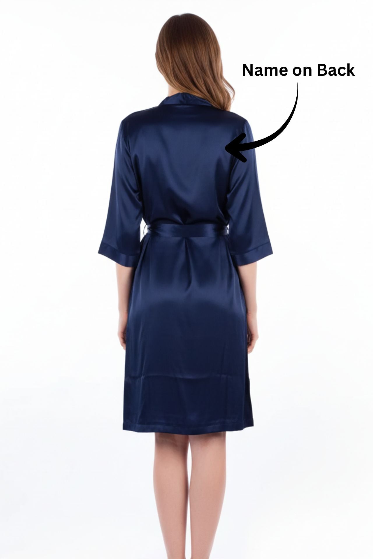 Satin Navy Classic Robe with elegant contrast piping (photo-ready!)