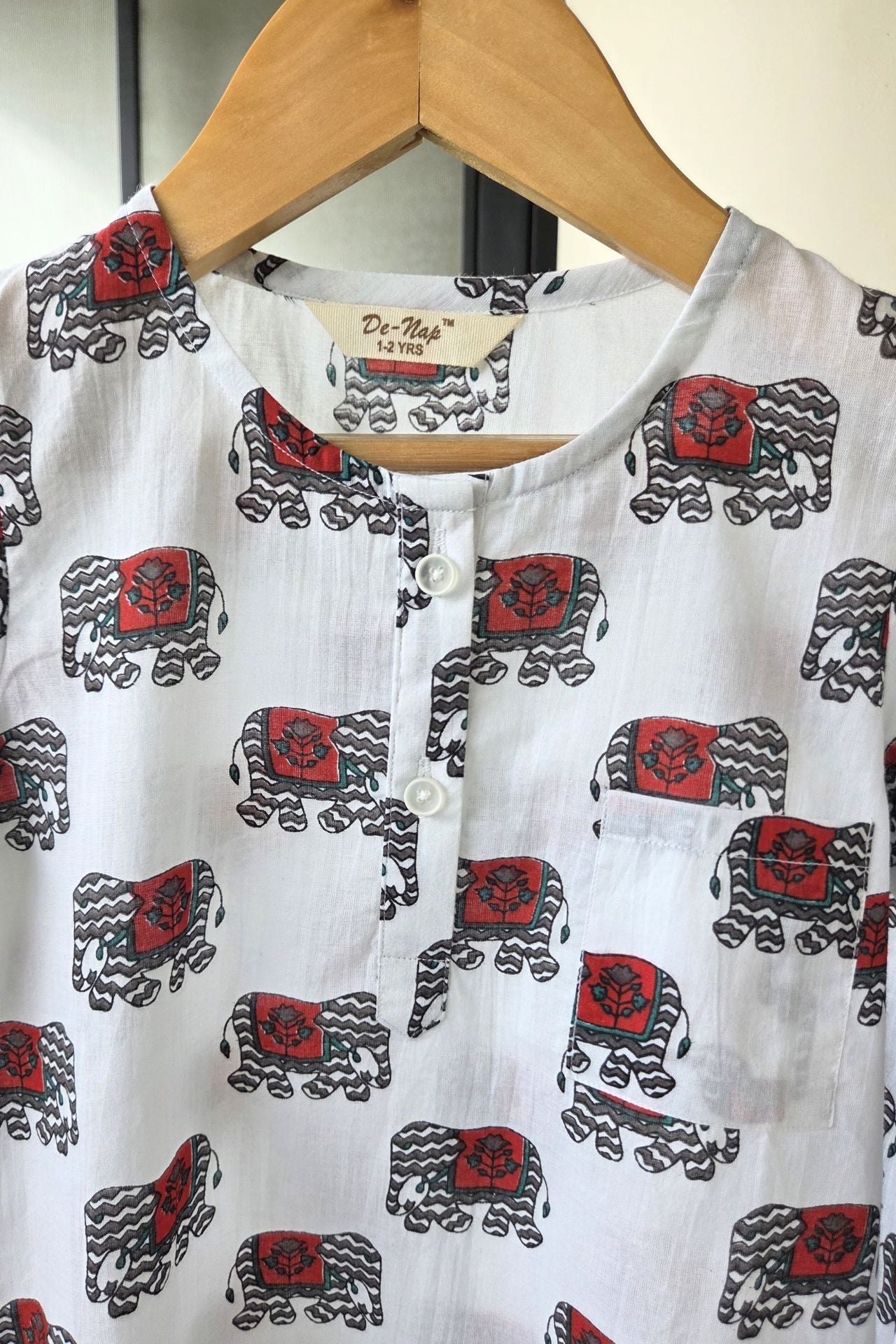 Let your little explorer march off to dreamland in our Blockprint Parade kurta‑pyjama set. Hand‑block‑printed elephants across airy white cotton, creating a look that works as festive day‑wear and ultra‑soft nightwear.